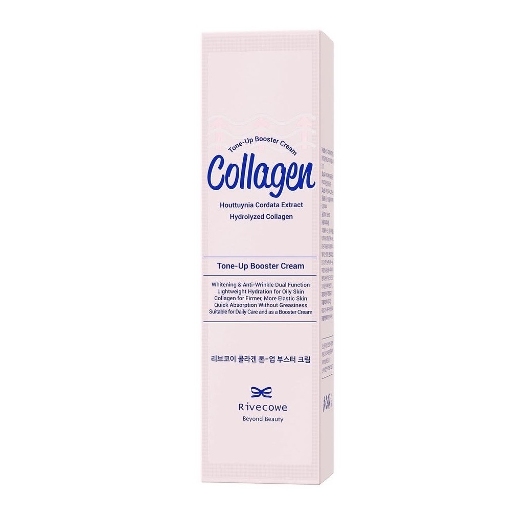 Collagen Tone-up Booster Cream Rivecowe - праймер для лица заполняет неровности на коже лица, поры и морщины. После нанесения праймера кожа выглядит гладкой и бархатистой, а макияж сохранится в течение всего дня. Прозрачный праймер для лица быстро впитывается, не скатывается, обеспечивает лучшее скольжение ВВ крема или тонального крема. Праймер от морщин создает защитный слой и наполняет кожу влагой.